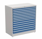 Zásuvkové jednotky radu 130 sú najširším variantom zo všetkých ponúkaných skriniek. So svojou šírkou 1330 mm poskytujú obrovský skladovací priestor. K dispozícii máte dve varianty s výškou 110 cm a 140 cm. 110 cm vysoká skrinka obsahuje kryt, ktorý slúži ako pracovná doska s gumovou podložkou. Táto výška je totiž ideálna pre prácu v stoji. Bezpečnostný zámok zabraňuje otvoreniu ďalších zásuviek, pokiaľ máte už jednu otvorenú. Vďaka nemu nikdy nedôjde k prevráteniu skrinky.