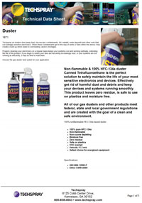 Značka výrobků Techspray se specializuje na výrobu nátěrů, technických sprejů, čisticích prostředků a dalších nejrůznějších chemikálií, nářadí a pracovních pomůcek pro elektronický průmysl, těžký průmysl a údržbu zařízení. Aktuálním vlastníkem světové značky Techspray je americká společnost Illinois Tool Works (ITW, avšak historie produktů Techspray se datuje již od roku 1968.