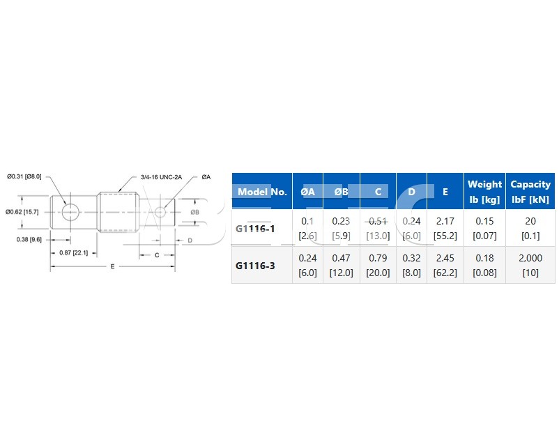 Technické dáta na porovnanie Adaptér s očkovými koncami, kompatibilný s Instron, 12,0mm, G1116-3