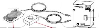- Pre spúšťanie je možné použitie tlačidlový alebo nožný spínač.