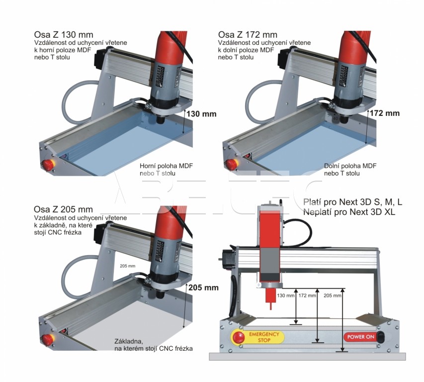- Priechodná výška: 130 mm, 172 mm, alebo bez stola 205 mm.