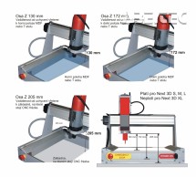 - Vďaka polohovateľnému stolu môžu prechádzať obrobky o výške (o svetlosti) 130 mm, 172 mm (neplatí pre veľkosť XL) či dokonca 205 mm v prípade práce bez stola.