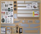 Kompletná sada obsahuje CNC frézku určenú na obrábanie plastov, dreva, plexiskla, uhlíka, DIBOND®, dosiek s elektronickými obvodmi, a pod., priamu brúsku PGS 500, sady upínacích čeľustí 4 x 30 mm, 4 x 40 mm a 4 x 80 mm, sady vrtákov na DPS.