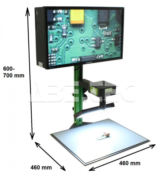 Stojan kamery umožňuje užívateľovi veľmi ľahko používať rôzne pracovné vzdialenosti, a to priblížením alebo oddialením kamery. Pokiaľ je vzdialenosť objektu pevná, môžete stále používať skutočný digitálny zoom ovládaný otáčaním kolieska myši. Pri použití digitálneho zoomu je obraz rovnako ostrý a jasný vďaka Full HD LCD monitoru a 6,3 megapixelovej kamere.