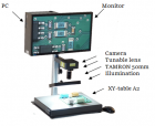 Obrázok 5 zobrazuje digitálny priemyselný mikroskop U4 s telecentrickou šošovkou 1280. Výhodou tejto konfigurácie je veľká hĺbka ostrosti a nedochádza k žiadnemu skresleniu perspektívy, takže toto nastavenie je ideálne na meranie.