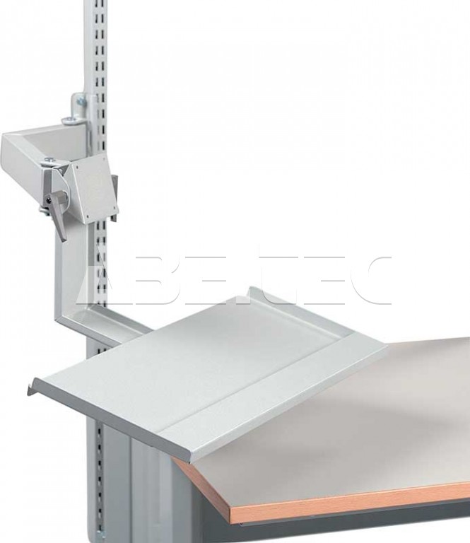 - Police na klávesnicu, ktorá sa pripevňuje k oceľovému držiaku na LCD monitor s dvojitým ramenom.