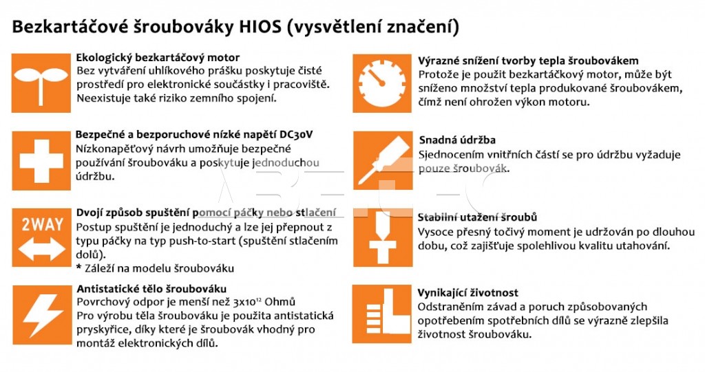 | Variant skrutkovača | ESD - antistatický, PS - push-to-start, BC - s vestavěným počitadlem šroubů |
