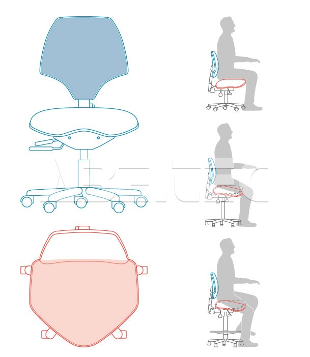 uvoľnené sedenie – podporuje nízku aj vysokú polohu sedu v jednej stoličke.