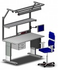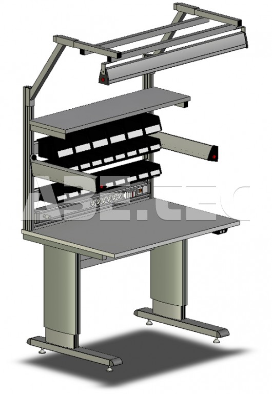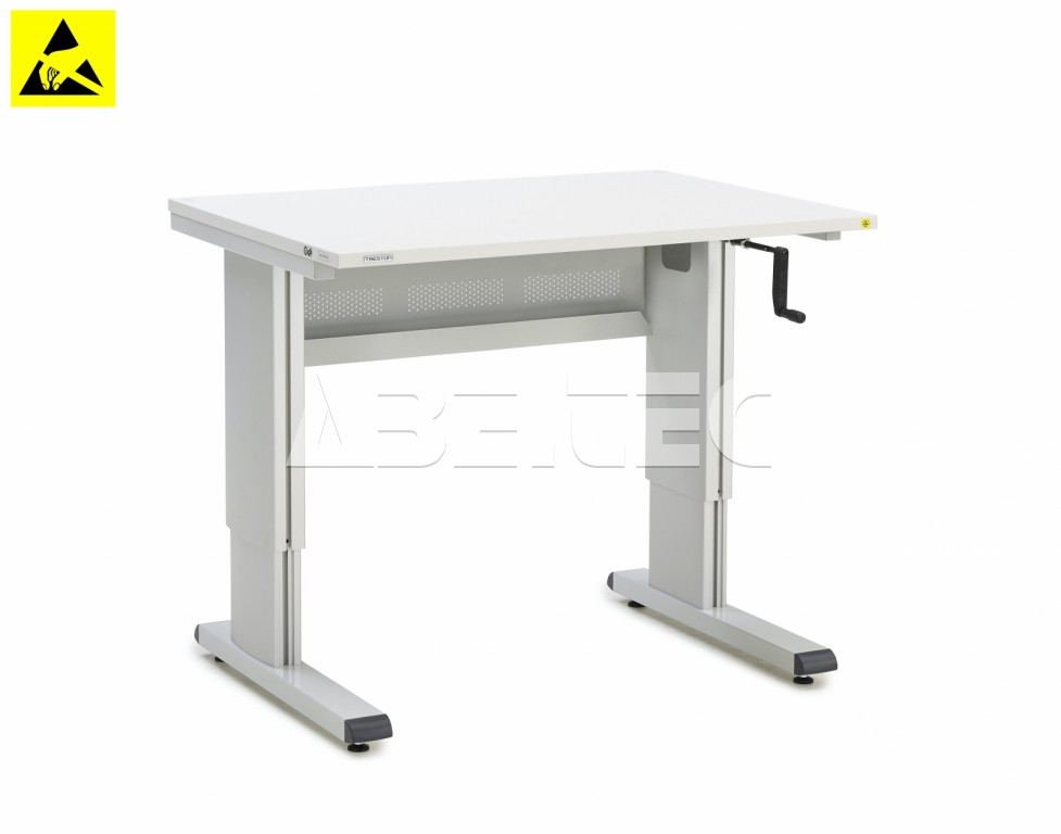 Výšku polohy stola možno prispôsobiť kľučkou od 700 do 1100 mm. Systém nastavenia na oboch stranách pomocou hliníkových profilov. Plochy stola sú z 26 mm hrubého antistatického / ESD laminátu, nastaviteľné nožičky poskytujú jemné prispôsobenie roviny stola. Uzemnenie cez ochranný 1 megaohmový rezistor. Možnosť meniť nohy za kolieska.