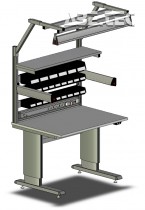 Výšku polohy stola možno prispôsobiť elektromotorom od 700 do 1100 mm. Nastavená rýchlosť posunu je 19 sekúnd od minima do maxima. Systém nastavenia na oboch stranách pomocou hliníkových profilov. Plochy stola sú z 26 mm hrubého antistatického / ESD laminátu, nastaviteľné nožičky poskytujú jemné prispôsobenie roviny stola. Uzemnenie cez ochranný 1 megaohmový rezistor. Možnosť meniť nohy za kolieska. Štandardným vybavením je káblová schránka.