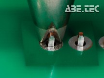 | Vyjmutí hrotu v pravé drážce stojanu | Vložení hrotu pomocí horního držáku |