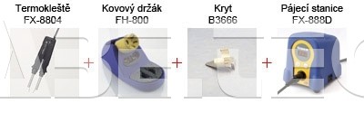 | Charakteristiky stanice | Uzamykatelné nastavení teploty, Dusíkový zákryt (volitelně), Automatický podavač pájky (volba), Barevné variace krytu stanice |