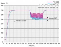Doba nábehu na 350 ° C je o 20 sekúnd rýchlejšia a pokles teploty hrotu sa počas nepretržitej práce znižuje.
