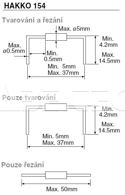 - Max. priemer vývodu ø 0,5 mm (iba pre žíhané medené vývody).