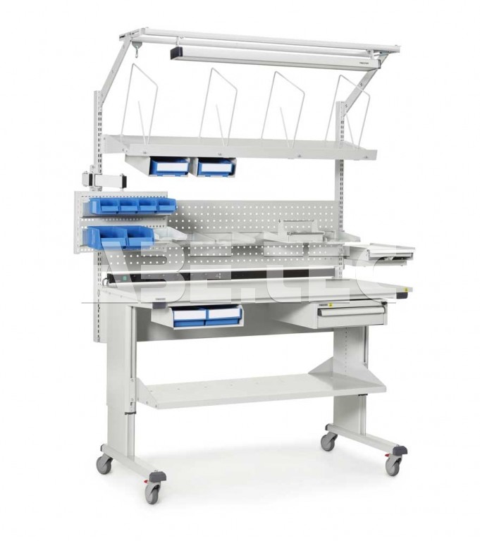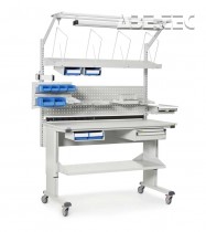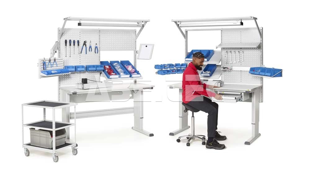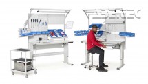 - Priestorovo úsporná koľajnica na zásobníky zaisťuje ergonomickú pracovnú polohu.