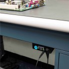 - Prepínač monitora podložky, ktorý deaktivuje obvod monitora pri použití v oblastiach, kde nie je ESD pracovný povrch.