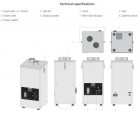- Elektrické dáta: 90 - 257 V / 1 Ph / 50/60 Hz, prúd pri plnom zaťažení 12,5 A / 1,1 kW, 16 A ON / OFF vypínač.