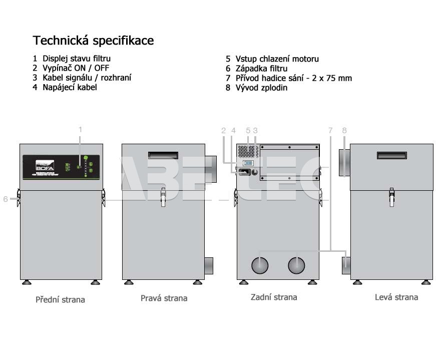 - Technológia odsávania obsahuje dva filtre: predfiltrácia, kombinovaný filter.