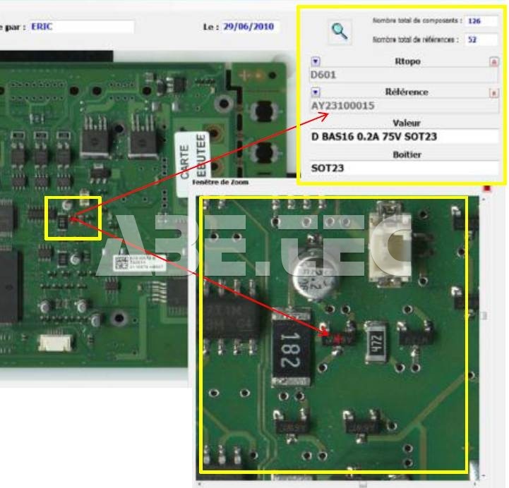 klasické súčiastky lakované DPS mechanické diely popisy, znaky, čiarové kódy |