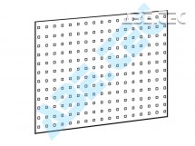 - Perforovaný oceľový panel s 9 mm perforáciami v rozstupe 38 mm.