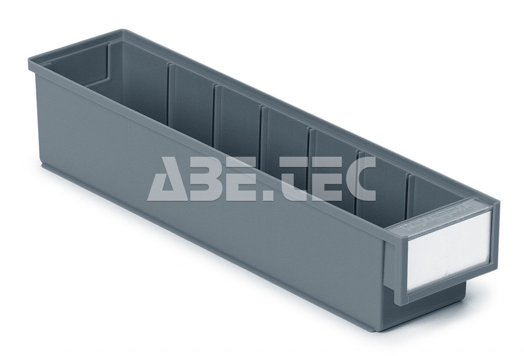 Plastový zásobník s vlnitým dnom, ktorý sa vkladá do úložných skriniek Treston. Rozmery zásobníka 400 x 92 x 82 mm, farba šedá.