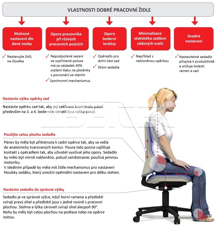 | Nastavenie stoličky | nastavení výšky sedáku, nastavení sklonu sedáku, nastavení úhlu opěrky zad, nastavení výšky opěrky zad |