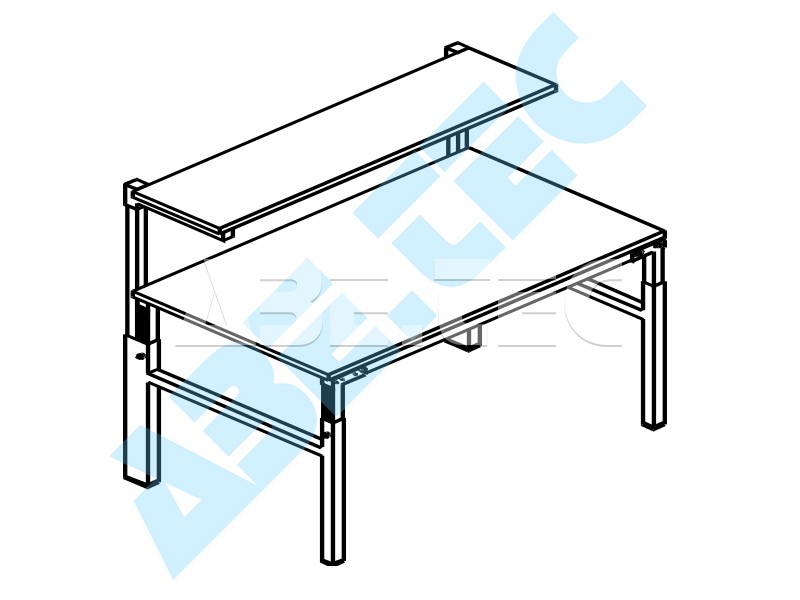 Výška sa nastavuje pomocou imbusu medzi 650 a 900 mm. Pracovný stôl so zvislými profilmi a laminovanou policou, nastavenie výšky medzi 1080 a 1550 mm, nosnosť 50 kg. Konštrukcia je rovnaká ako pri stole TP.