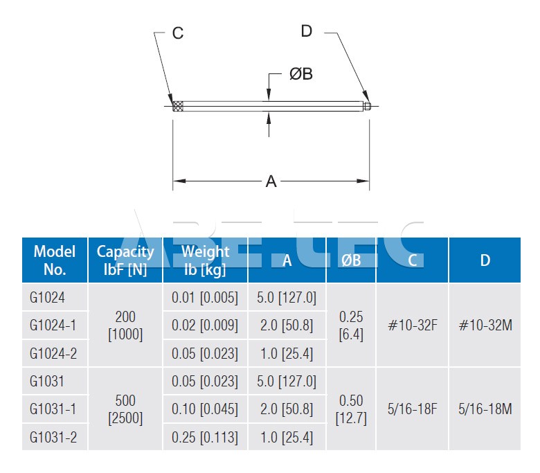 Technické dáta na porovnanie Predlžovacia tyč G1024-1E