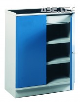 - Robustná priemyselná skladovacia skriňa s uzamykateľnými dverami.