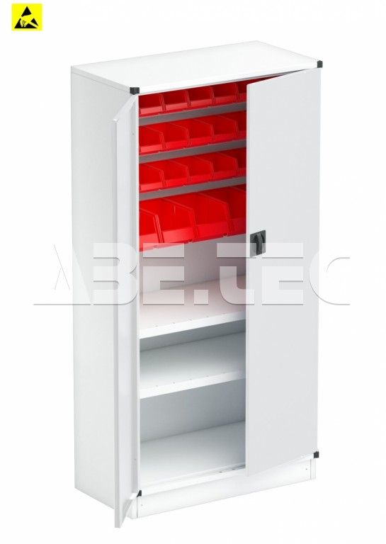 - Robustná priemyselná skladovacia skriňa s uzamykateľnými dverami v ESD prevedení.