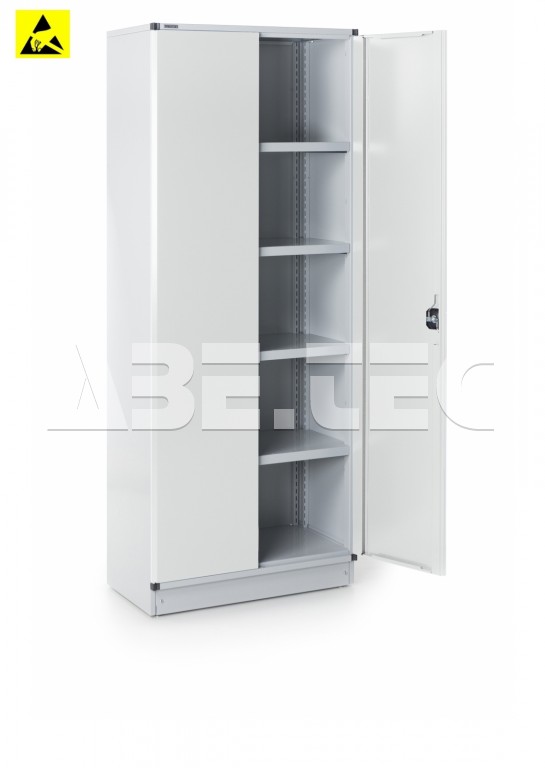 - Oceľová priemyselná skriňa so štyrmi policami v ESD prevedení.
