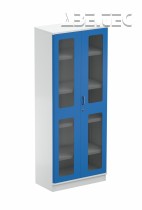 - Oceľová priemyselná skriňa so štyrmi policami.
