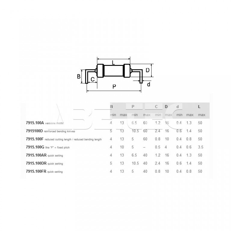 Tu nájdete voliteľné príslušenstvo, alternatívne a súvisiace produkty pre Rezačka a tvarovačka axiálnych komponentov Superform/A, štandardná verzia, 7915.100A
