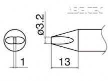 - Spájkovací hrot tvar 3.2D určený pre spájkovaciu rúčku FX-8002/FX-8003 a spájkovaciu stanicu FX-801.