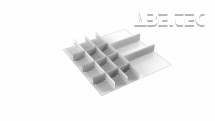 Obsahuje 3 pozdĺžne a 11 priečnych deličov.