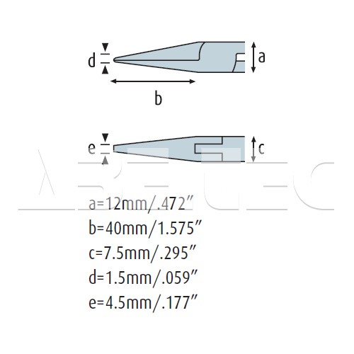 Sú ponúkané tri štandardné typy špičiek: „ploché“, „guľaté“, „polguľaté“, dodávané v rôznych priemeroch a rozmeroch pri všetkých zašpicatených verziách, ale tiež pri niektorých verziách s plochými špičkami. Jemné špičky sú určené na delikátne práce, mohutnejšie špičky pre lepší pákový prevod. Aby bol výber jednoduchší, pri jednotlivých modeloch sú uvedené všetky rozmery.