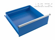 - Výsuvná polica na guličkových ložiskách vhodná do regálových systémov so šírkou 750 mm.