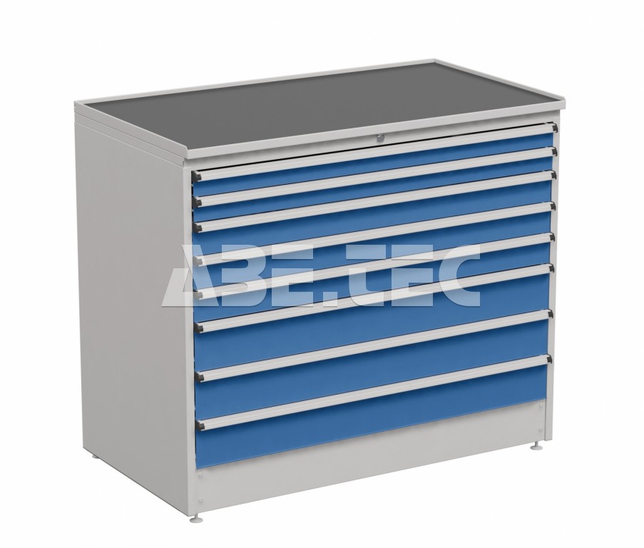 Centrálne uzamykatelné zásuvkové jednotky z vysoko kvalitnej ocele ponúka priestor pre skladovanie nástrojov a malých súčiastok. Zásuvkové skrinky sú pokryté epoxidovou ochrannou vrstvou, centrálnym zamykaním a úchytkou z eloxovaného hliníka po celej šírke zásuvky. Hladké a tiché teleskopické guličkové výsuvy poskytujú jednoduché otvorenie.
