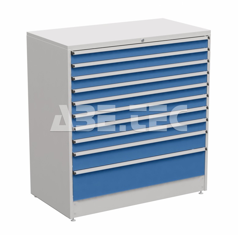 Centrálne uzamykatelné zásuvkové jednotky z vysoko kvalitnej ocele ponúka priestor pre skladovanie nástrojov a malých súčiastok. Zásuvkové skrinky sú pokryté epoxidovou ochrannou vrstvou, centrálnym zamykaním a úchytkou z eloxovaného hliníka po celej šírke zásuvky. Hladké a tiché teleskopické guličkové výsuvy poskytujú jednoduché otvorenie.