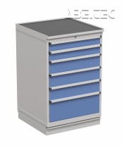 Centrálne uzamykatelné zásuvkové jednotky z vysoko kvalitnej ocele ponúka priestor pre skladovanie nástrojov a malých súčiastok. Montujú sa pomocou držiakov pod dosku stola. K dispozícii sú aj verzie s kolieskami či soklom. Zásuvkové skrinky sú pokryté epoxidovou ochrannou vrstvou, centrálnym zamykaním a úchytkou z eloxovaného hliníka po celej šírke zásuvky.