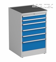 Centrálne uzamykateľné zásuvkové jednotky z vysoko kvalitnej ocele ponúkajú priestor na skladovanie nástrojov a malých súčiastok. Montujú sa pomocou držiakov pod dosku stola. K dispozícii sú aj verzie s kolieskami či soklom. Zásuvkové skrinky sú pokryté epoxidovou ochrannou vrstvou, centrálnym zamykaním a úchytkou z eloxovaného hliníka po celej šírke zásuvky.