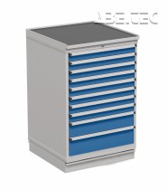 Centrálne uzamykatelné zásuvkové jednotky z vysoko kvalitnej ocele ponúka priestor pre skladovanie nástrojov a malých súčiastok. Montujú sa pomocou držiakov pod dosku stola. K dispozícii sú aj verzie s kolieskami či soklom. Zásuvkové skrinky sú pokryté epoxidovou ochrannou vrstvou, centrálnym zamykaním a úchytkou z eloxovaného hliníka po celej šírke zásuvky.