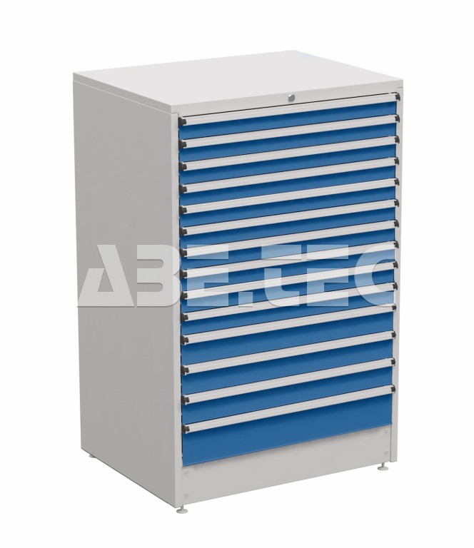 Centrálne uzamykatelné zásuvkové jednotky z vysoko kvalitnej ocele ponúka priestor pre skladovanie nástrojov a malých súčiastok. Zásuvkové skrinky sú pokryté epoxidovou ochrannou vrstvou, centrálnym zamykaním a úchytkou z eloxovaného hliníka po celej šírke zásuvky. Hladké a tiché teleskopické guličkové výsuvy poskytujú jednoduché otvorenie.