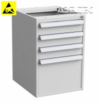 Centrálne uzamykatelné zásuvkové jednotky z vysoko kvalitnej ocele ponúka priestor pre skladovanie nástrojov a malých súčiastok. Montujú sa pomocou držiakov pod dosku stola. K dispozícii sú aj verzie s kolieskami či soklom. Zásuvkové skrinky sú pokryté epoxidovou ochrannou vrstvou (sivá, RAL 7035), centrálnym zamykaním a úchytkou z anodizovaného hliníka po celej šírke zásuvky.