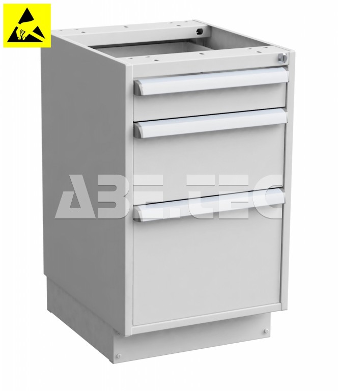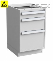Centrálne uzamykatelné zásuvkové jednotky z vysoko kvalitnej ocele ponúka priestor pre skladovanie nástrojov a malých súčiastok. Montujú sa pomocou držiakov pod dosku stola. K dispozícii sú aj verzie s kolieskami či soklom. Zásuvkové skrinky sú pokryté epoxidovou ochrannou vrstvou (sivá, RAL 7035), centrálnym zamykaním a úchytkou z anodizovaného hliníka po celej šírke zásuvky.