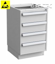 Centrálne uzamykatelné zásuvkové jednotky z vysoko kvalitnej ocele ponúka priestor pre skladovanie nástrojov a malých súčiastok. Montujú sa pomocou držiakov pod dosku stola. K dispozícii sú aj verzie s kolieskami či soklom. Zásuvkové skrinky sú pokryté epoxidovou ochrannou vrstvou (sivá, RAL 7035), centrálnym zamykaním a úchytkou z anodizovaného hliníka po celej šírke zásuvky.